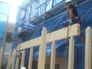 前日の15日に土台敷き及び先行足場組を行い、今日を迎えました。