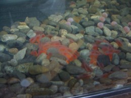 水槽の石陰でじっと隠れていた鮭の稚魚が、2センチぐらいになり